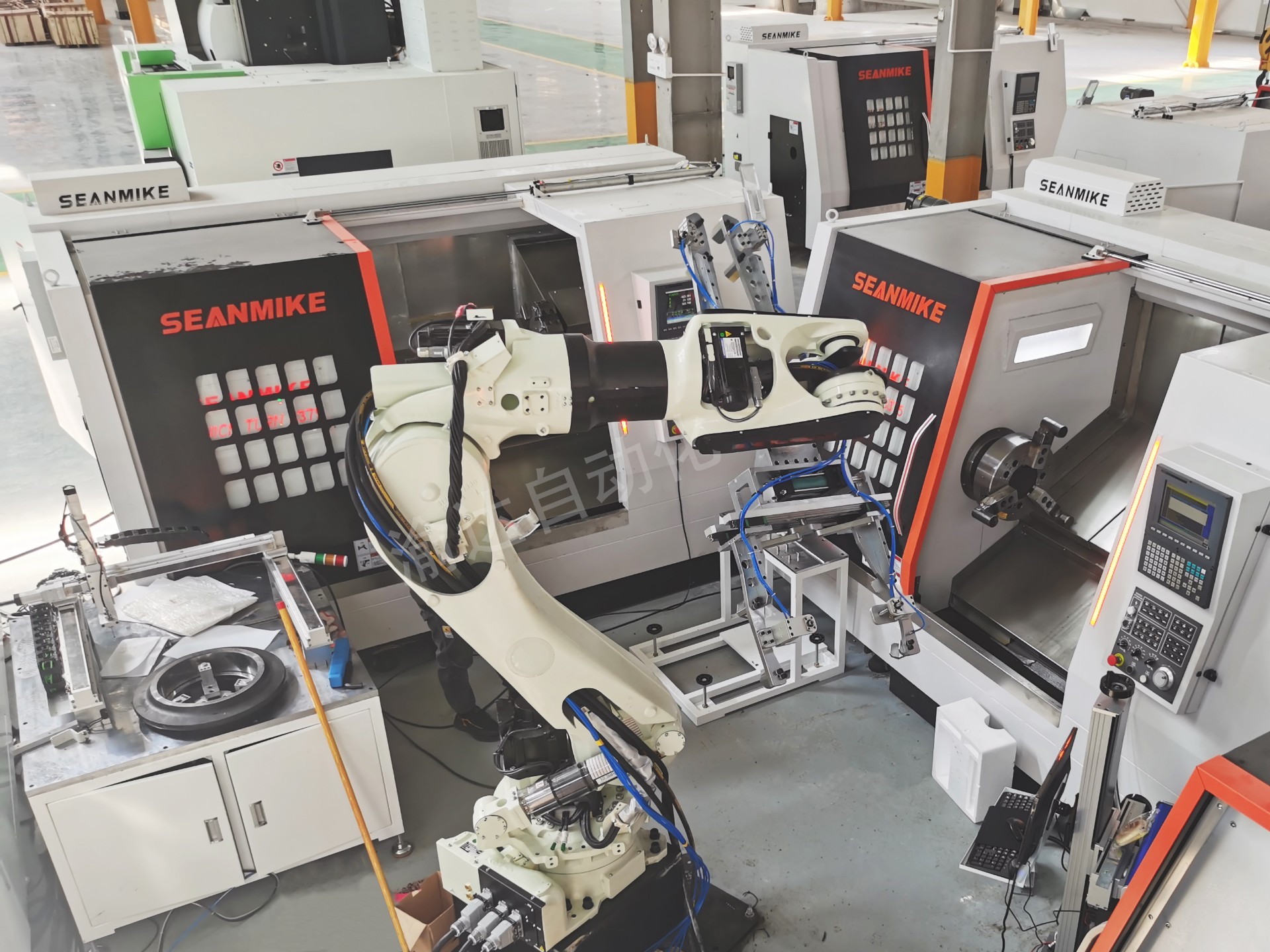 盾構機刀具系列機器人及自動化設備包含:上下料機器人、扭矩跑合機、拆刀機、注油機、氣密性檢測設備、油壓機、烤箱、激光焊接設備、激光打標設備等。