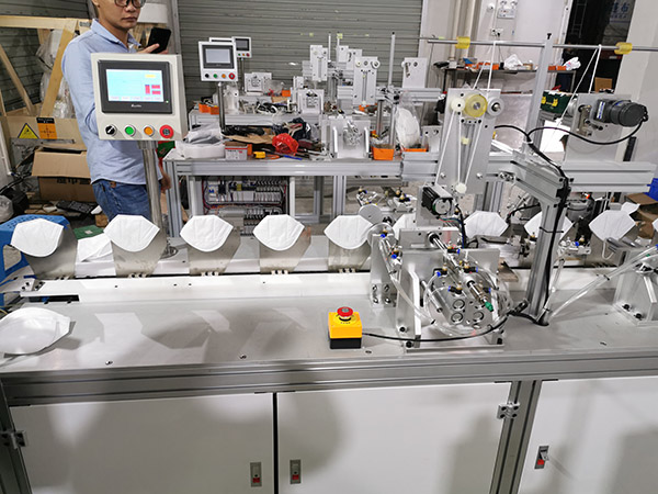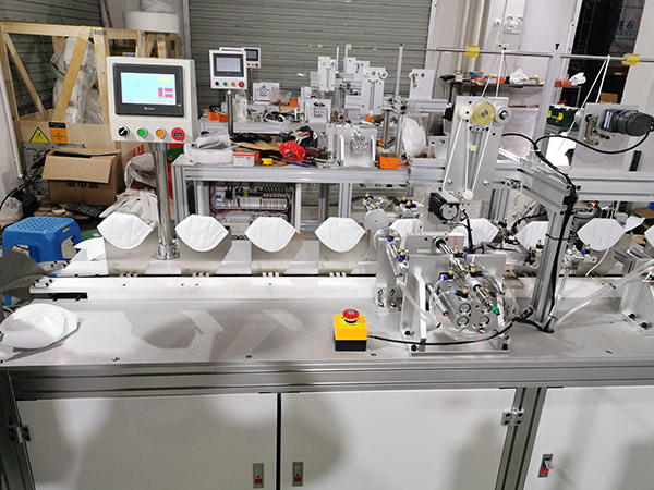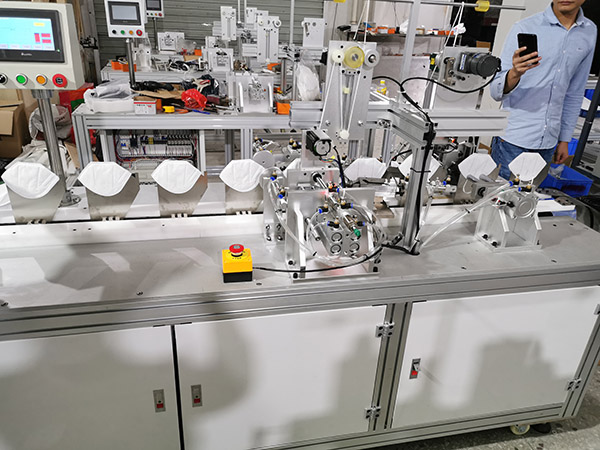 The main function of the KN95 earband welding machine is to weld the earbands on the left and right sides of the sealed KN95 mask sheet.